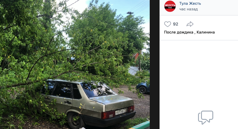 10 июня в Тульской области ввели «желтый» уровень погодной опасности — синоптики предупредили жителей региона о грозе. Бесследно стихия не прошла — в социальных сетях начали появляться фото, иллюстрирующие последствия грозы.