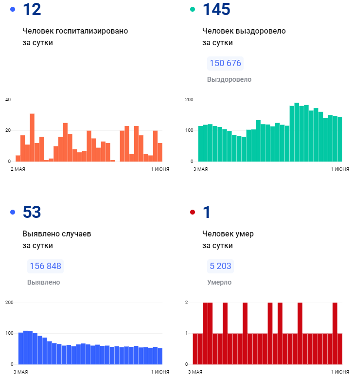 Также за сутки подтвержден один летальный исход среди ранее заразившихся пациентов, за все время скончалось 5 203 человека. Общее число выздоровевших за сутки выросло на 145 и достигло показателя в 150 676.