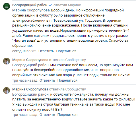 Жители Богородицкого района поспешили воспользоваться такой возможностью. Так, женщина из поселка Товарковский уже обратилась к Вадиму Игонину, сетуя на проблему с водоснабжением.