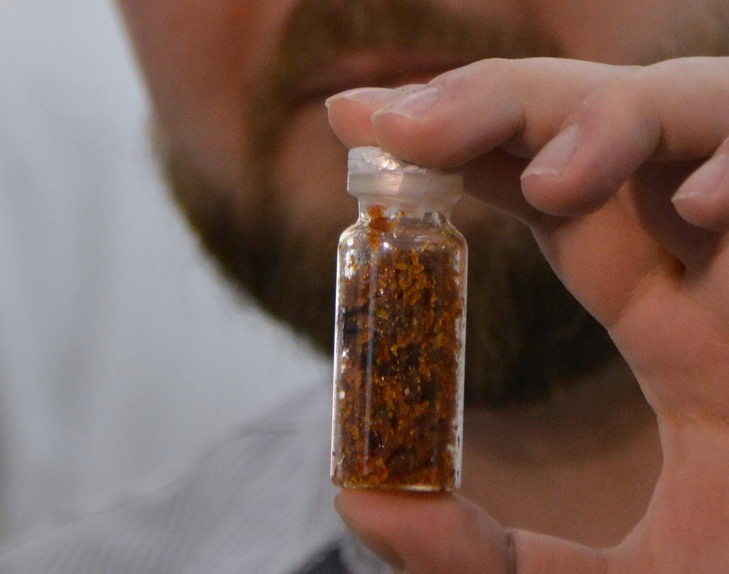 Богдан Карлинский добавил, что сейчас научные сотрудники Тульского государственного университета занимаются фундаментальными исследованиями и ищут способы проведения химических реакций на основе продуктов переработки биомасс. Так, заведующий лабораторией продемонстрировал гидроксиметилфурфурол — загрязняющее вещество, полученное из фруктозы яблок путем долгого хранения. Оно также может получаться в результате высокотемпературной обработки.