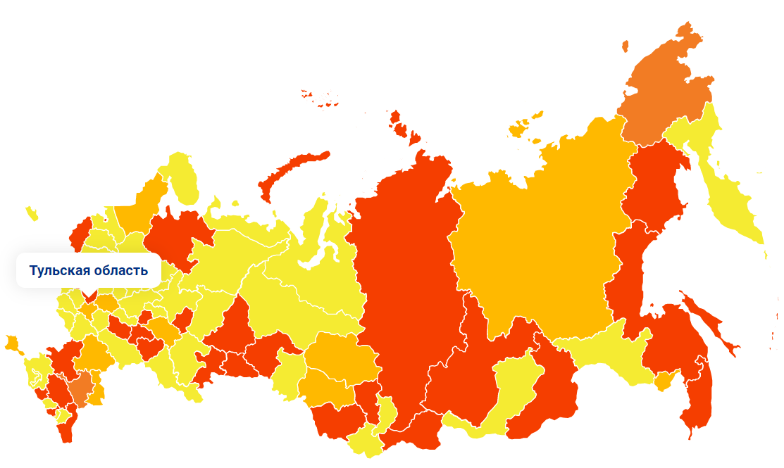 Тульская область перешла в красную зону распространения коронавирусной инфекции. Это означает, что в регионе за последние семь дней были зарегистрированы более 150 случаев на 100 000 населения.