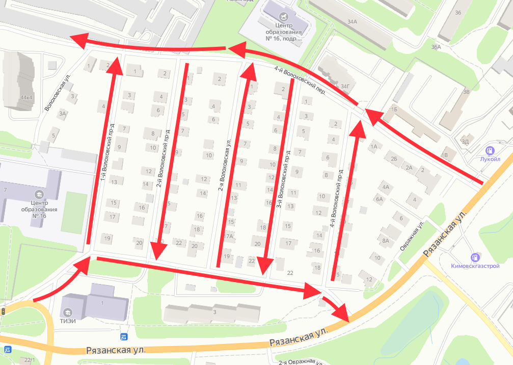 «Для того, чтобы подъехать к данным учреждениям, нам нужно будет выехать на Рязанскую, которая всегда стоит в пробках, тем самым время в пути увеличится с 2 минут до бесконечности, а также петлять внутри квартала. Очень много наших жителей завозят по пути на работу своих детей в школу и в детский сад, на обратном пути соответственно забирают. Прямое сообщение между домом, школой и детским садом будет отсутствовать. Для того, чтобы забрать одного ребенка из школы, второго из детского сада, придется сделать огромный крюк (улица Мезенцева — Городской переулок – улица Рязанская — 4-й Волоховский переулок)»