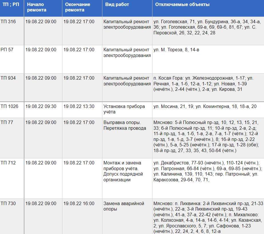 19 августа часть областного центра будет обесточена из-за плановых работ «Тульских городских электрических сетей». В этот день по ряду адресов запланированы выправка и установка опор, перетяжка проводов и ремонт электрооборудования.