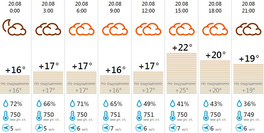 20 августа в Туле местами пройдет кратковременный дождь. Днем столбики термометров не поднимутся выше +19..+22 градусов.