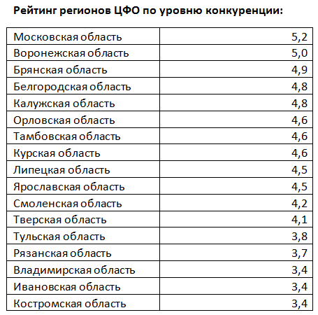 Отметим, что среди всех регионов Центрального Федерального округа по уровню конкуренции Тульская область расположилась на 13 месте. Ожидаемо, труднее всего найти работу в московском регионе (более 5 человек на место), а легче — во Владимирской, Ивановской и Костромской областях.