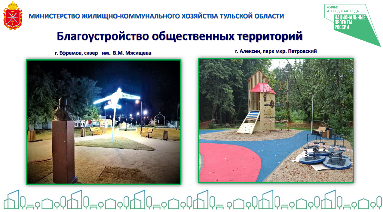 — В Ефремове в сквере имени Мясищева завершены основные работы по благоустройству. Главным украшением сквера является арт-объект «Самолет». Он уже стал одним из самых любимых селфи-мест молодежи. Работы в сквере — это третий этап благоустройства исторического центра Ефремова в рамках национального проекта «Жилье и городская среда».