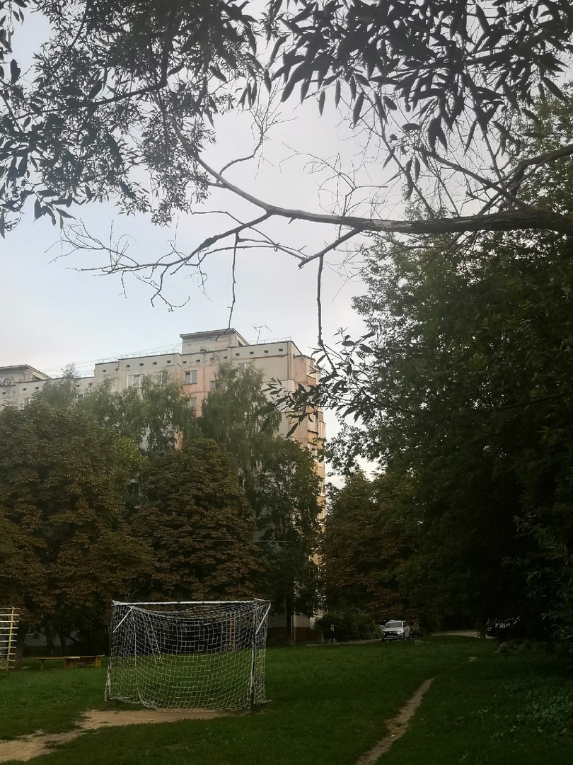 Сухая ветка дерева нависает прямо над футбольными воротами, рядом с которыми постоянно находятся дети.