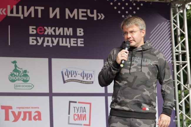 Участников забега поприветствовал министр спорта Тульской области Дмитрий Яковлев.