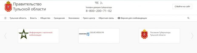 На сайте tularegion.ru появился раздел, посвященный частичной мобилизации. Перейти в него можно с главной страницы портала