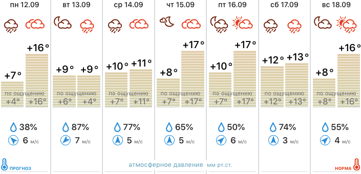 Напомним, в понедельник, 12 сентября, в регионе обещают небольшой дождь (2,6 мм по данным Гидрометцентра России) и до +17 градусов.