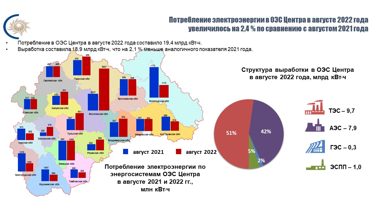 Всего в августе 2022 года электростанции Тульской области выработали 458, 5 млн кВт.ч, что на 9,9% больше объема аналогичного периода 2021 года. А с января по январь выработка составила 7204, 4 млн кВт.ч. Такие показатели на 3% выше, чем в прошлом году. Специалисты отмечают, что рост произошел за счет увеличения потребления электроэнергии предприятиями химической и пищевой промышленности.