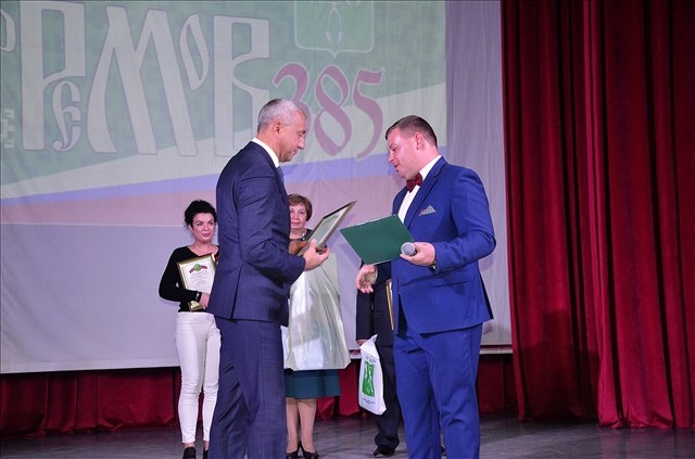 Между поздравлениями и награждениями звучали номера в исполнении артистов РДК «Химик», а так же, солиста Тульской областной филармонии Сергея Лукьянчикова, пародийными номерами порадовал приглашенный в подарок городу от Игоря Крюкова артист – Андрей Баринов.