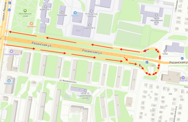 В Туле на улице Рязанской начали действовать изменения организации движения. Так, на съезде с проспекта Ленина на Рязанскую в районе домов №№4, 6, 8, 10, 12, 14, 16 и 18 и с Рязанской в сторону проспекта Ленина в районе дома №125 ввели одностороннее движение.