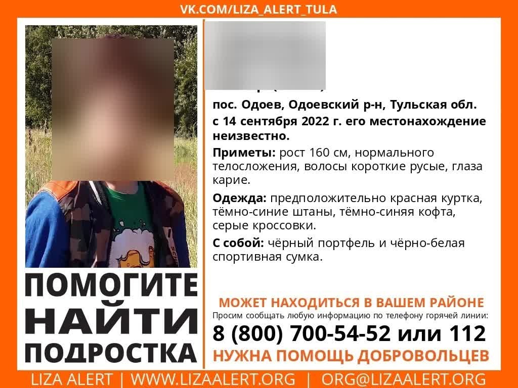 В Одоеве Тульской области пропал 13-летний школьник. О местонахождении мальчика ничего не известно с 14 сентября, передает поисковый отряд «Лиза Алерт».