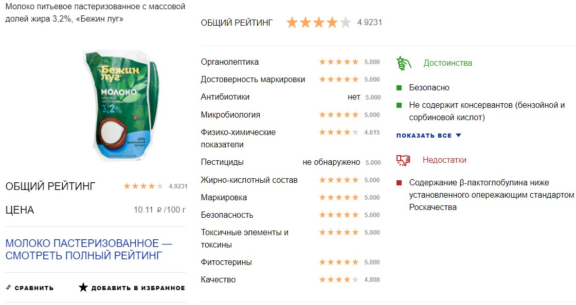 Отметим, что исследование Роскачества коснулось и тульского молока: эксперты проверили «Бежин луг» от «Тульского молочного комбината», купленный в интернет-магазине. Продукту дали 4,92 звезды.