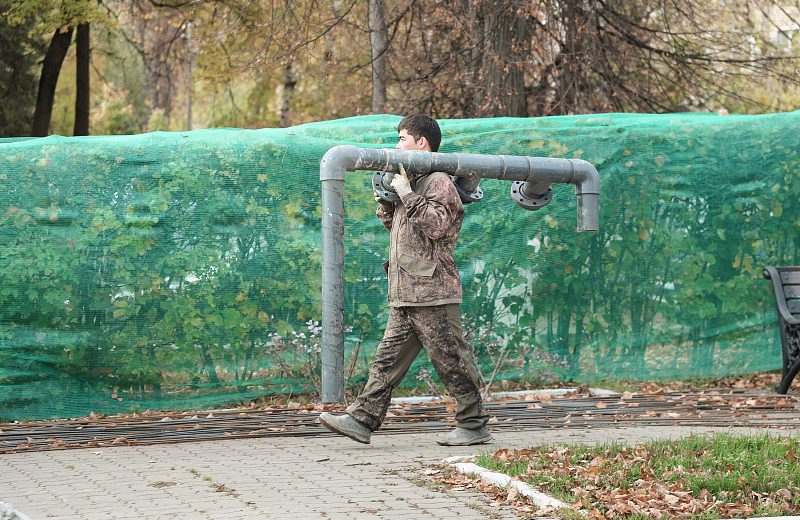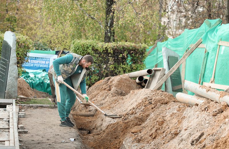 В Туле ремонтируют прямоугольные фонтанные чаши в Толстовском сквере на проспекте Ленина. По данным городской администрации, средства на работы выделили из муниципального бюджета. Сообщается, что подрядчик уже демонтировал бетонные основания и пластиковые трубы. Теперь рабочие готовят основание для укладки новых стальных труб и заливки монолита.