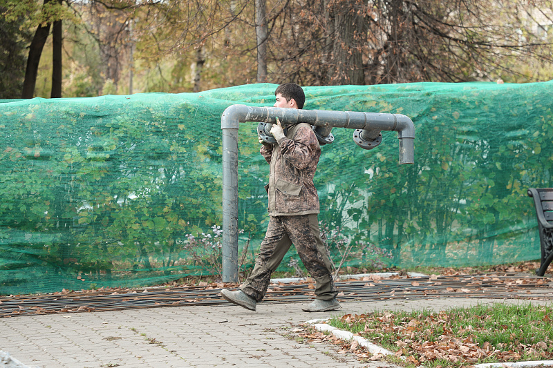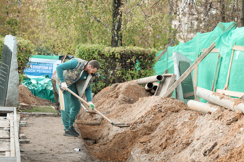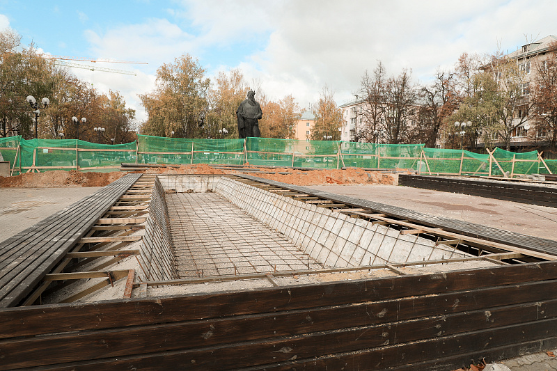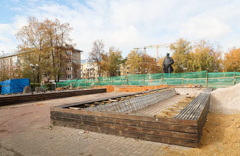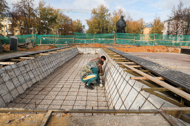 В Туле ремонтируют прямоугольные фонтанные чаши в Толстовском сквере на проспекте Ленина. По данным городской администрации, средства на работы выделили из муниципального бюджета. Сообщается, что подрядчик уже демонтировал бетонные основания и пластиковые трубы. Теперь рабочие готовят основание для укладки новых стальных труб и заливки монолита.
