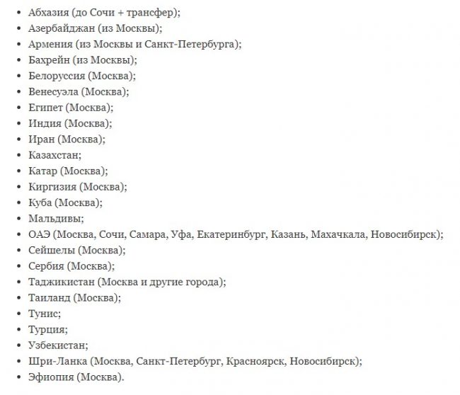 В ноябре российские туристы смогут отправиться прямыми рейсами в 24 страны. Об этом сообщает «Турпром». Речь идет, в первую очередь, о регулярных перелетах. В большинстве случаев путешественникам придется улетать из Москвы. В остальных регионах прямых рейсов не так много.