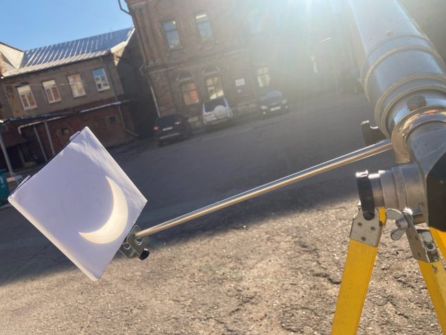 Судя по опубликованным кадрам, некоторые подписчики канала для того, чтобы увидеть и запечатлеть солнечное затмение, вооружились телескопом.
