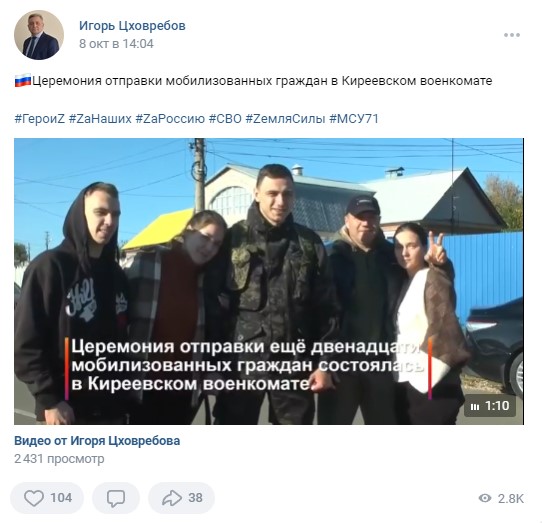 В начале октября каждом из районов области были организованы проводы мобилизованных, о которых главы рассказывали в своих постах. Кто-то лично обратился к призывникам, а кто-то даже преподнес от себя вещевые и продуктовые наборы. И подписчики не могли остаться равнодушными к таким сообщениям. Посты набирали множество просмотров даже у тех глав, на аккаунтах которых активность обычно была низкой.