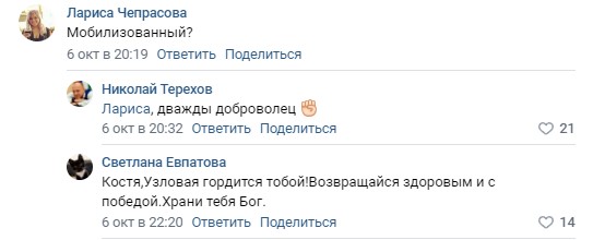 Сам Николай Терехов также в комментариях выразил гордость за мужчину, отметив, что тот уже второй раз отправляется на СВО добровольцем: