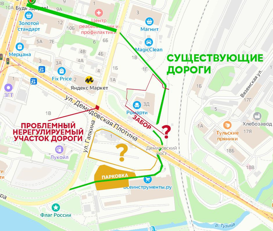 Демидовскую плотину в Туле отремонтировали, но городские общественники предложили не останавливаться на этом и продумать удобную для автомобилистов схему движения в районе перекрестка с улицей Галкина. Активисты проекта «Станок» отметили, что участок на пересечении Демидовской плотины и Галкина оживленный и нерегулируемый, и часто провоцирует аварийные ситуации.