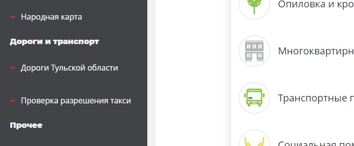 На данный момент раздел, посвященный дорожным и транспортным вопросам, на указанном портале выглядит так: