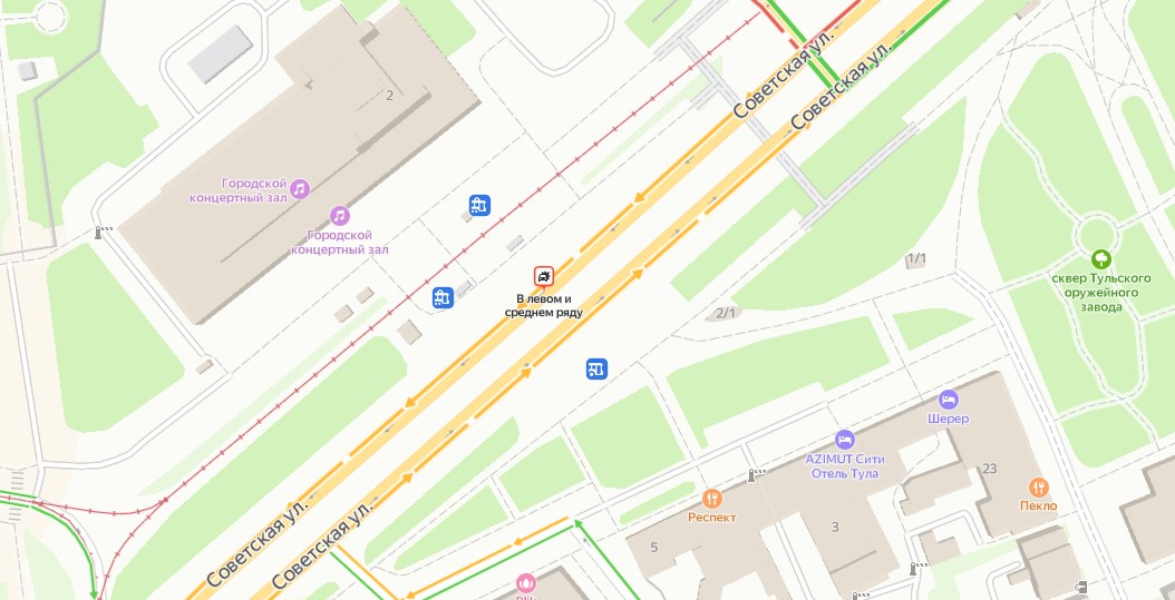 Утром 23 декабря в Туле на Советской улице образовалась серьезная пробка. Причиной стало ДТП, случившееся у остановки «улица Мосина». По словам очевидцев, из-за аварии оказались перекрыты сразу два ряда проезжей части — средний и левый.