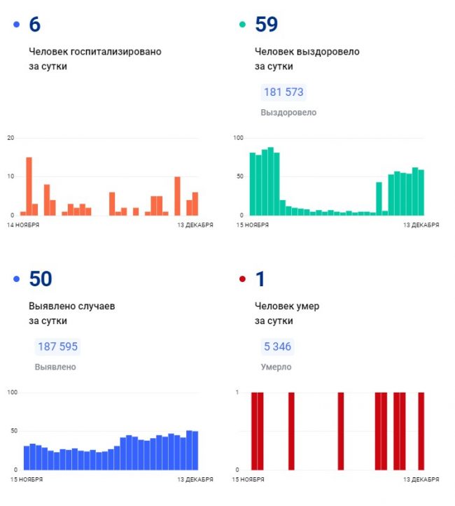 Всего с начала пандемии в регионе заболели 187 595 человек, а выздоровели — 181 573. Общее число умерших туляков к 13 декабря достигло 5 346.