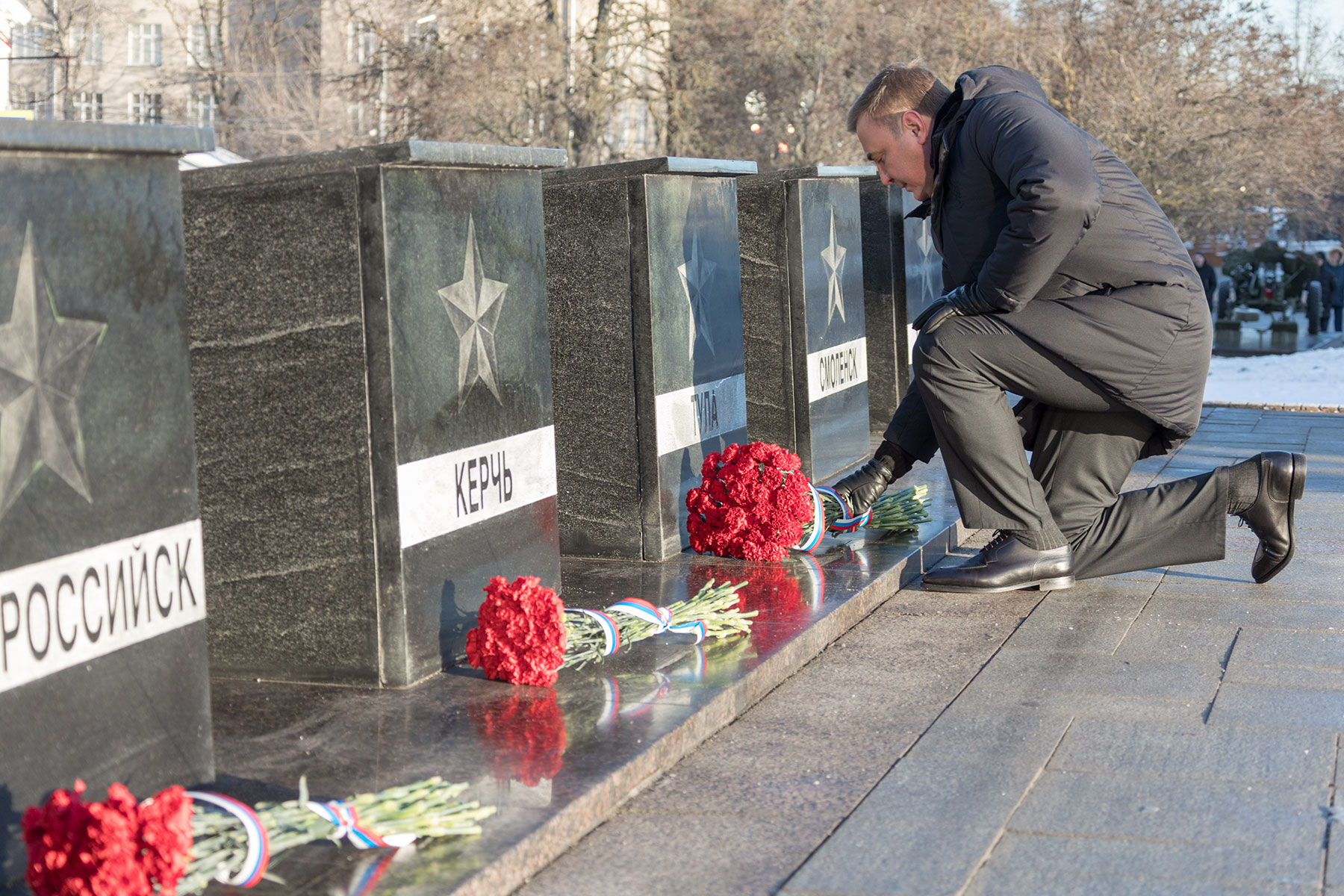 Прошла неделя началась с возложения цветов к Вечному огню на площади Победы в честь 81-й годовщины героической обороны Тулы.
