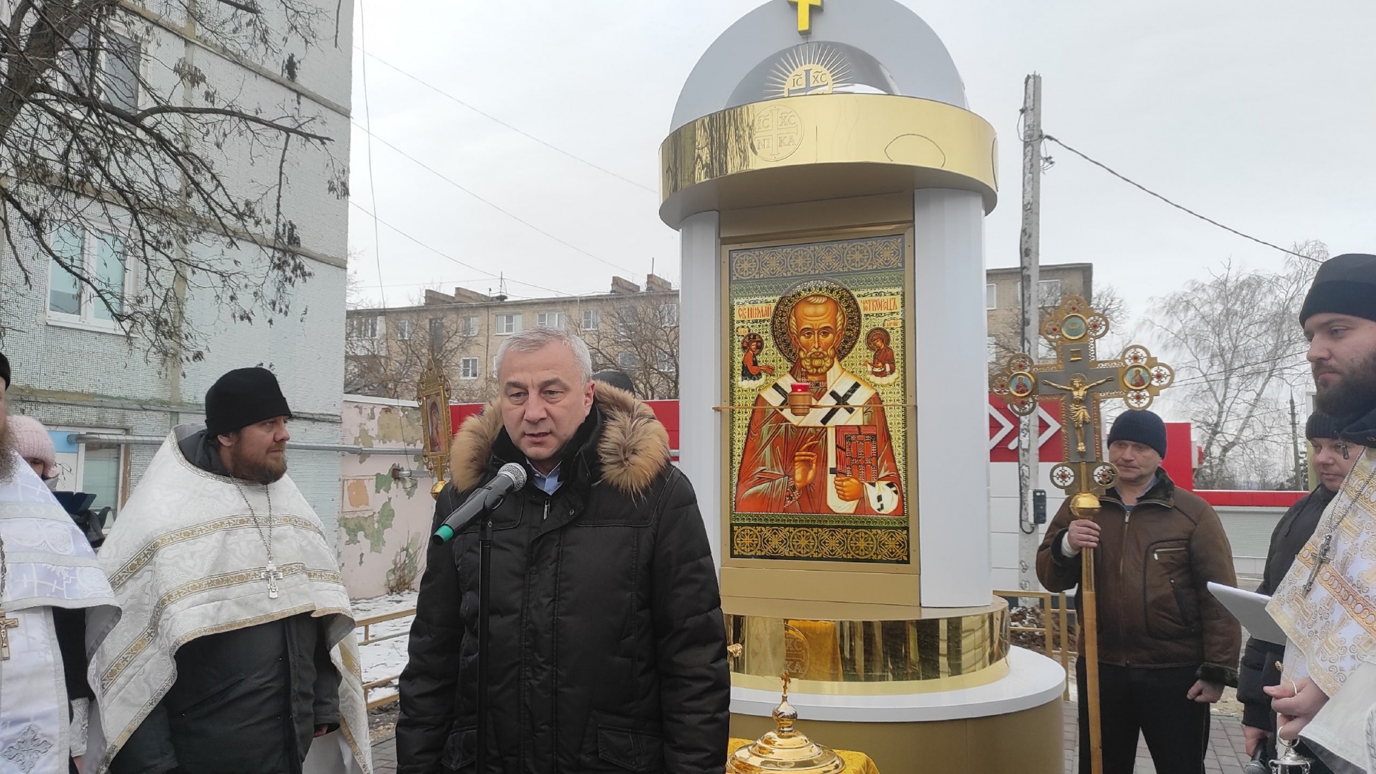 В Ефремове на месте бывшего Никольского храма на улице Горького появился киот с иконой Николая Чудотворца. На освящении киота присутствовали глава администрации Сергей Балтабаев, благочинный церквей Ефремовского церковного округа — иерей Вячеслав Слепнев, который совершил чин освящения.