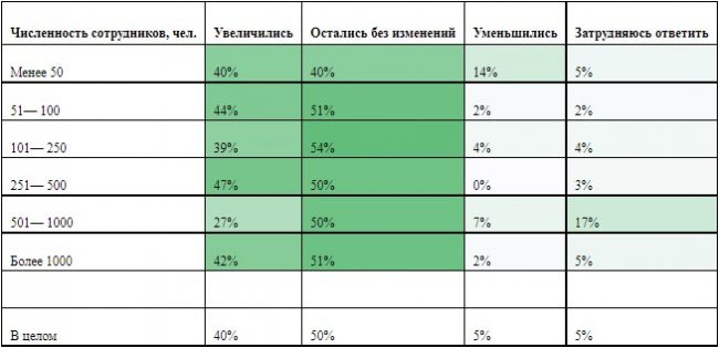 Эксперты отмечают, что по итогам 2022 года 5% компаний снизили зарплаты сотрудникам, еще 40% — увеличили. Большую роль в ситуации с заработными платами является размер организации. Чаще всего уменьшали зарплаты компании со штатом в пределах 50 человек.