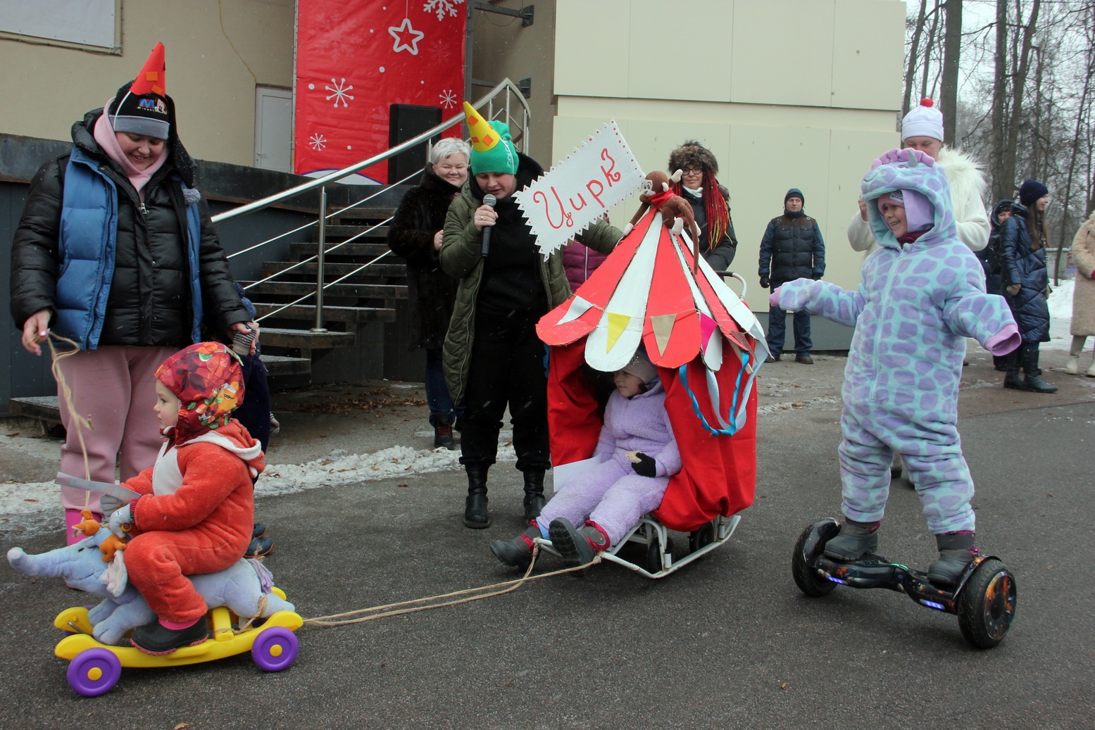 Семья Осташевых и семья Плужниковых с санками в стиле «цирк-шапито»: