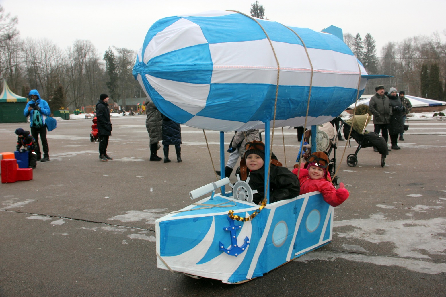 Семья Никитиных с санками-дирижаблем:
