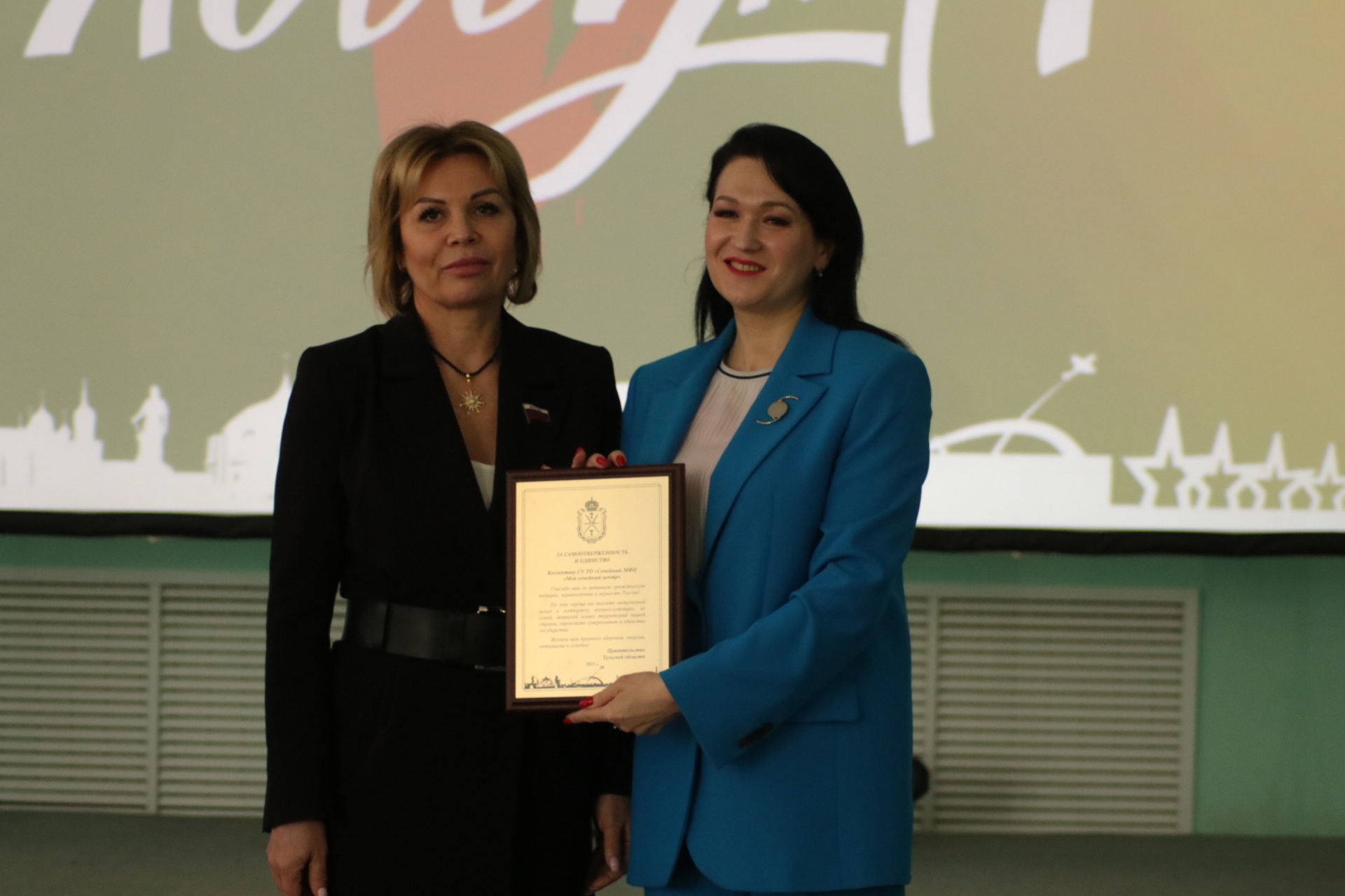 Наградные плакетки волонтеры получили от Главы города Тула Ольги Слюсаревой. Она поприветствовала всех собравшихся и отметила, какую важную роль играет добровольческая деятельность в настоящей ситуации.