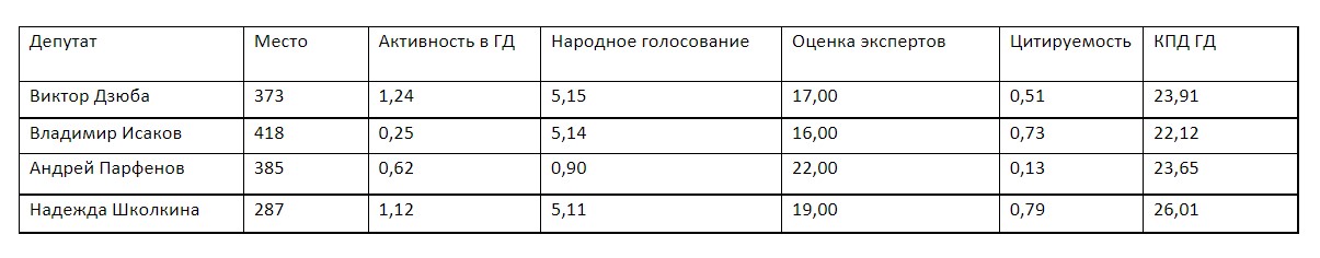 Из этих четырех неравновесных индексов складывается «Коэффициент полезности депутатов Государственной Думы» (КПД ГД).