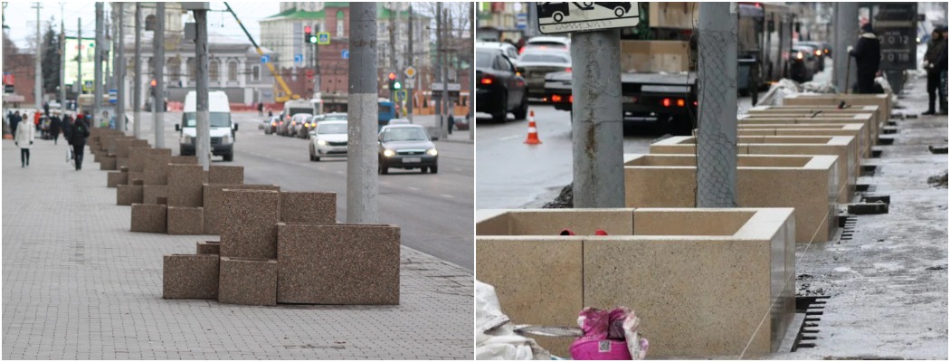 А как же велодорожка? Сейчас 2,2 метра велохайвея занимают модули для деревьев. Кстати, многие туляки отметили, что конструкции очень напоминают убранные с улицы «скандальные» вазоны. Но это лишь внешнее сходство. Модули оборудованы автоматической системой полива. Для того чтобы установить блоки, рабочие потратили несколько недель — они применяли спецтехнику и разбирали тротуарную плитку.