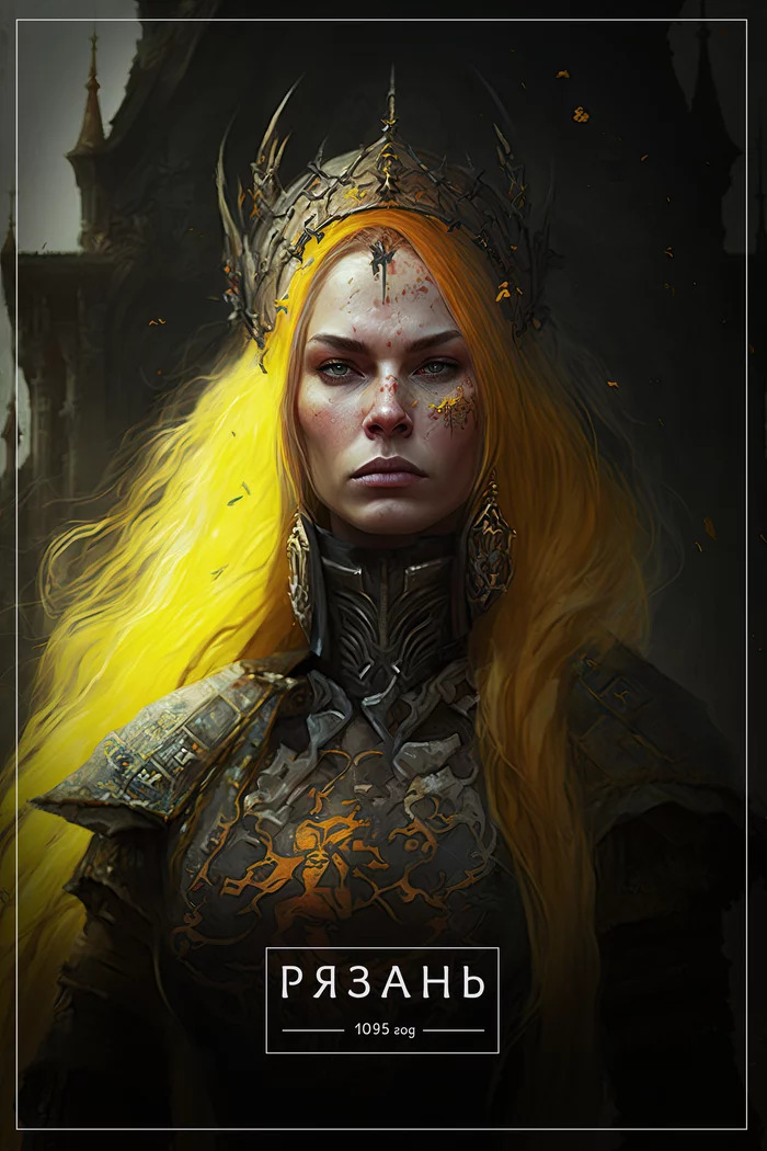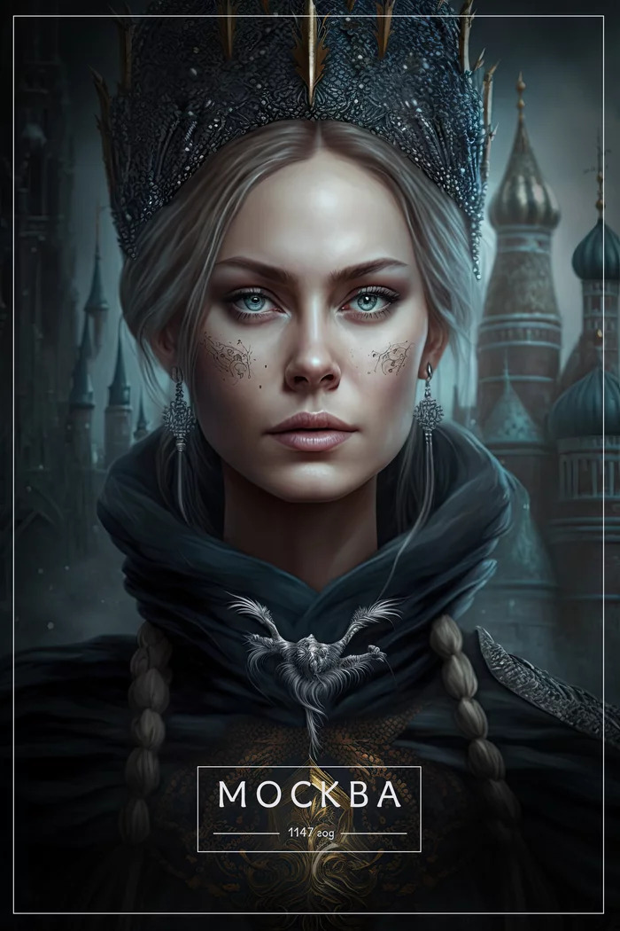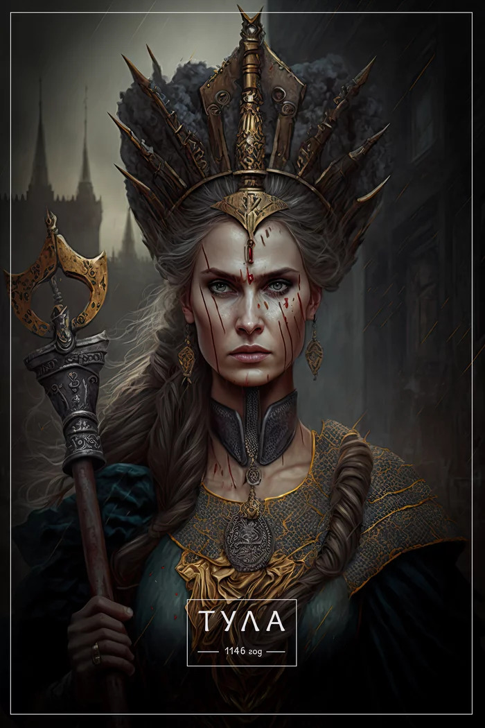 Тулу искусственный интеллект видит, как воинственную женщину с посохом и следами крови на лице. А вот соседняя Москва стала блондинкой в элегантном кокошнике, голубыми глазами.