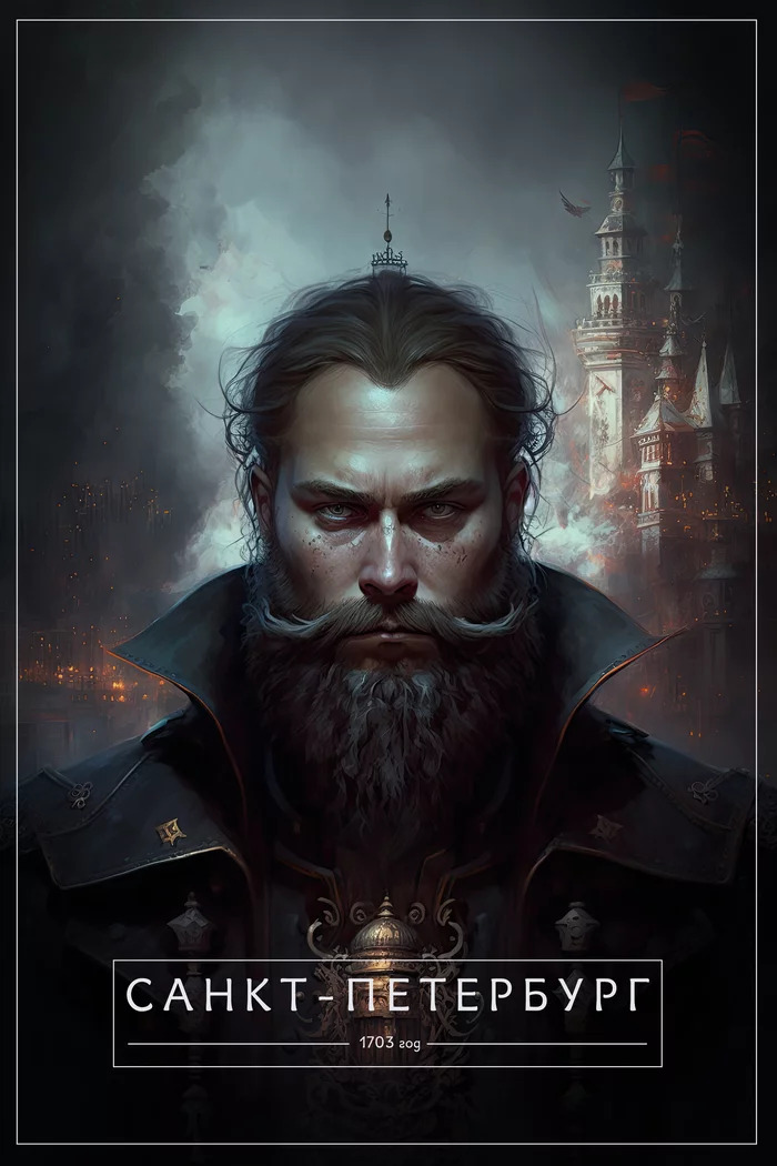 Санкт-Петербург, как и ожидалось, нейросеть изобразила ухоженным (пусть и мрачным) мужчиной с бородой и закрученными усами.