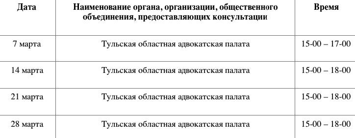 Представители Тульского регионального отделения «Ассоциации юристов россии» проведут приемы в марте. Консультировать туляков эксперты будут в приемной правительства Тульской области на проспекте Ленина,2. Для того, чтобы попасть на прием, тулякам нужно заранее записаться по телефону 8 (4872) 24-99-98.