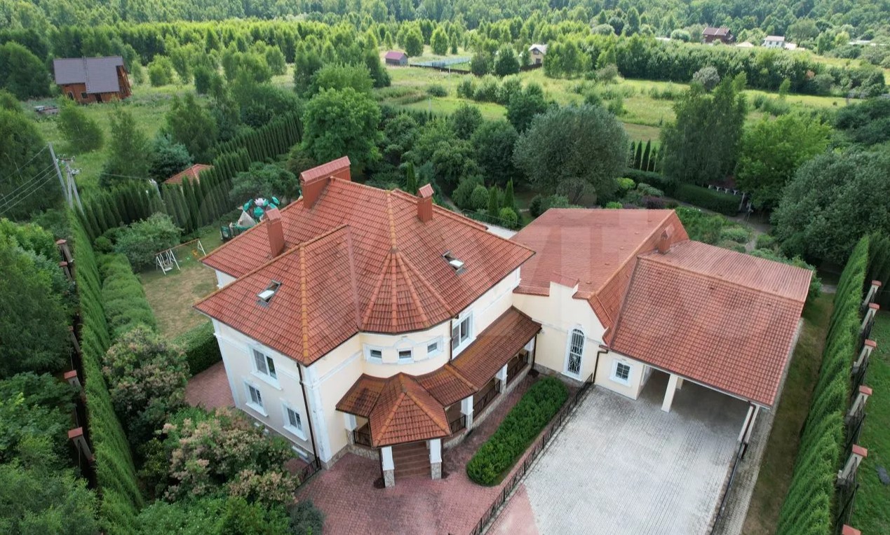 На цокольном этаже размещены технические помещения, подвал и прачечная. На участке есть озеро, зона барбекю и футбольное поле. Перед домом оборудована зона парковки на 3-4 машины.