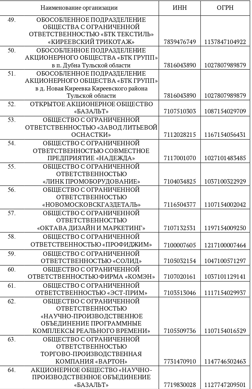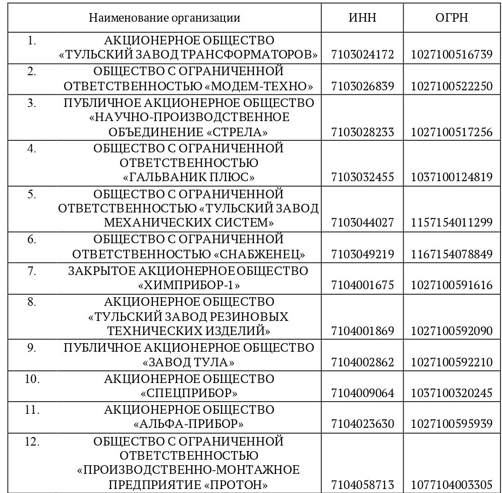 Так, в списке организаций, которые наиболее остро нуждаются в специалистах, оказалось 70 заводов, компаний и научно-исследовательских институтов. Среди них «Тульский завод трансформаторов», «Стрела», «Штамп», «Сплав», «Октава», «Киреевский трикотаж», «Базальт», «Тулачермет-Сталь» и другие крупные предприятия.