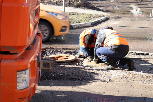 Ежедневно смотровые колодцы в Туле обследуют сотрудники управления по транспорту и дорожному хозяйству, проверяя занижены ли люки относительно проезжей части.