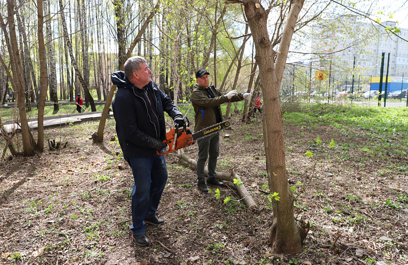 После Илья Беспалов вместе с депутатом Госдумы РФ Надеждой Школкиной навел порядок в Березовой роще на улице Металлургов, 62-а. Здесь участники субботника подметали дорожки, собирали ветки и пилили сухостойные деревья. Также вместе с активными жителями обсудили вопросы благоустройства.