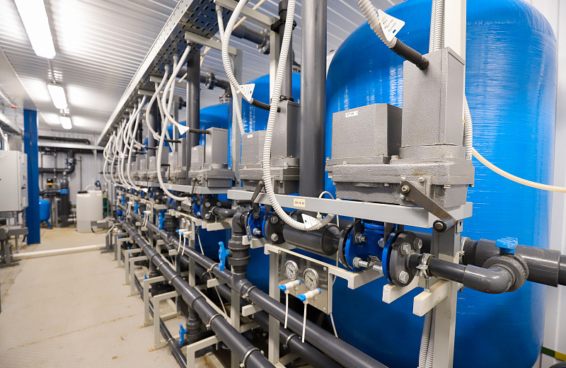 Гендиректор компании-подрядчика рассказал, что производительность объекта составляет 60 кубометров в час. Он оснащен двумя резервуарами чистой воды в 514 кубометров и фильтрами обезжелезивания. На станции есть отдельно стоящий блок промывных вод. В нем установили оборудование для осветления промывных вод и их возврата в основной технологический процесс очистки исходной воды. Для работы объекта проложили 980 метров водопроводных сетей и 200 метров канализации. Станция работает автономно. Вода очищается при помощи фильтров и обеззараживания ультрафиолетом.