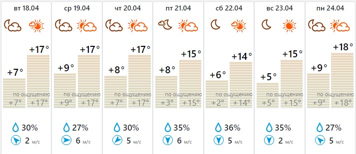 К концу недели станет только теплее. Уже в среду, 19 марта, в Центральной россии воздух прогреется до +14…+19 градусов. В пятницу и субботу недели столбики термометров опустятся на пару градусов, но уже в воскресенье поднимутся к +20 градусам.