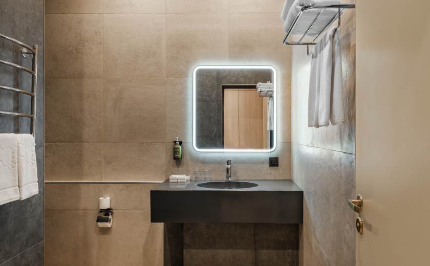 Во всех гостиничных номерах есть набор полотенец, фен, мягкие халаты и тапочки, косметические принадлежности. А в люксах к стандартному набору белья гостям обязательно предложат набор для джакузи.