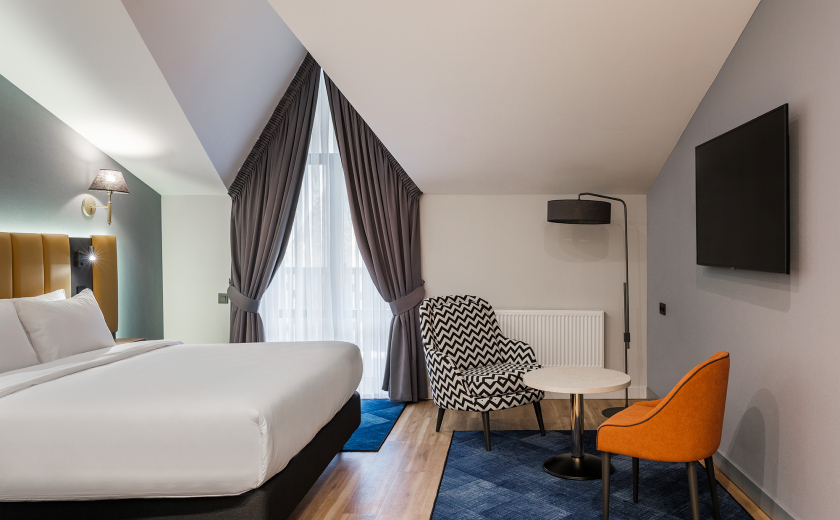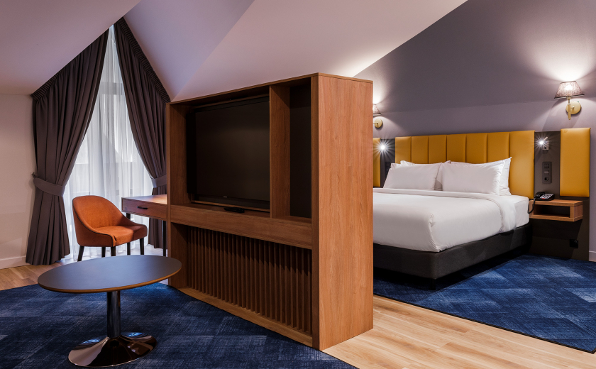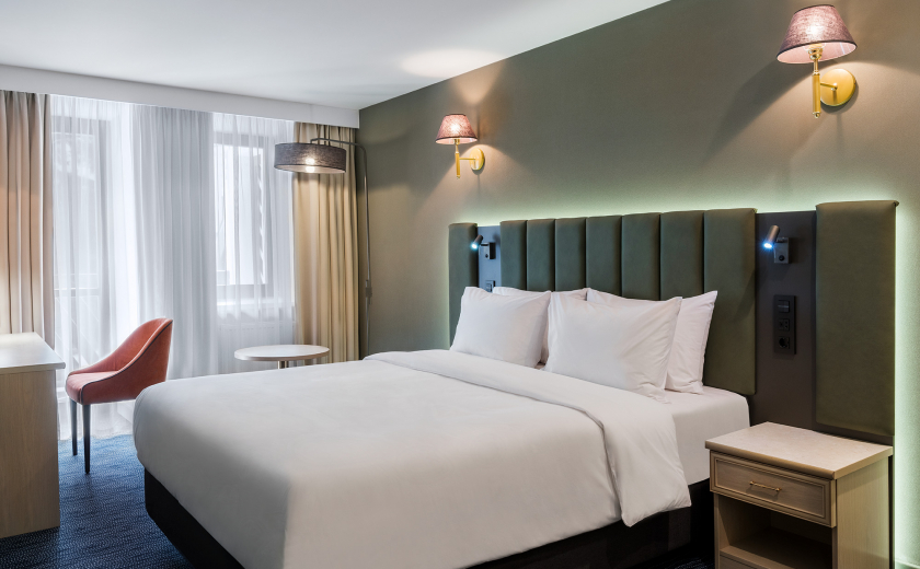 Номерной фонд отеля – это 89 комфортабельных гостиничных номеров шести различных категорий. Во всех номерах есть оборудованное рабочее место, телевизор и высокоскоростной Wi-Fi, кондиционер, телефон, сейф, утюг, гладильная доска, чайно-кофейная станция. Все это вместе создает ощущение комфорта и спокойствия, позволяя наслаждаться отдыхом в полном объеме. Гостям с детьми по запросу предоставляется детская кровать.