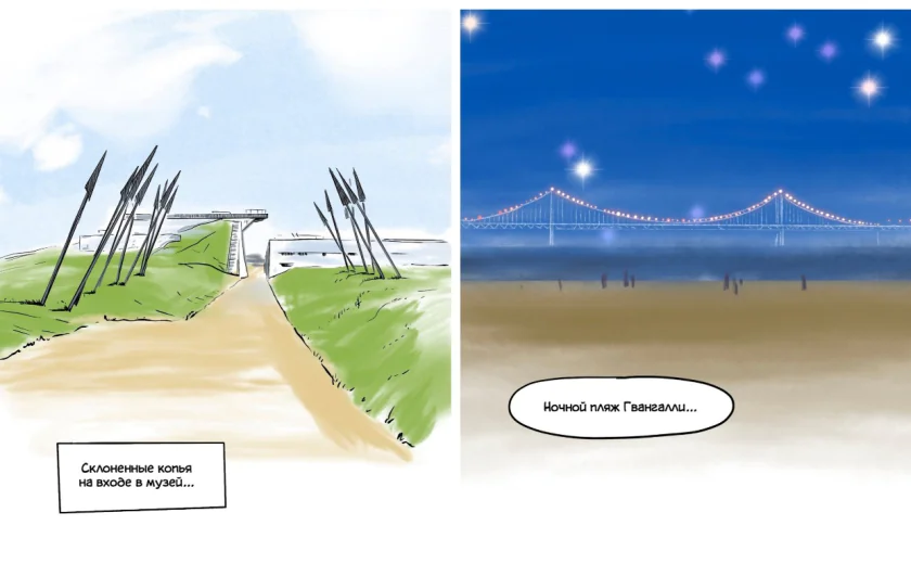 «Мы с Константином создали романтическую историю. Слабовидящий парень из Кореи Джун и тульский экскурсовод с Куликова поля Люба случайно знакомятся по телефону и общаются. Но Джун скрывает от Любы, стесняется, что у него инвалидность. История заканчивается счастливо. Он все-таки решается приехать в Россию. Мы через комикс показали ту инфраструктуру для людей-инвалидов, какая у нас есть. Что у нас на остановках шрифт Брайля применяется, что у нас там тактильная плитка. Что люди у нас отзывчивые и готовы помочь. И что у нас в музеях есть специальные тактильные предметы в экспозиции», — рассказала «Тульской прессе» Анастасия Калинина.