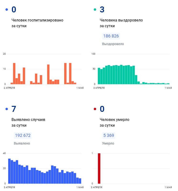 Всего с начала пандемии в регионе заболели 192 672 человека, а выздоровели — 186 826. Общее число умерших туляков к 1 мая достигло 5 369.